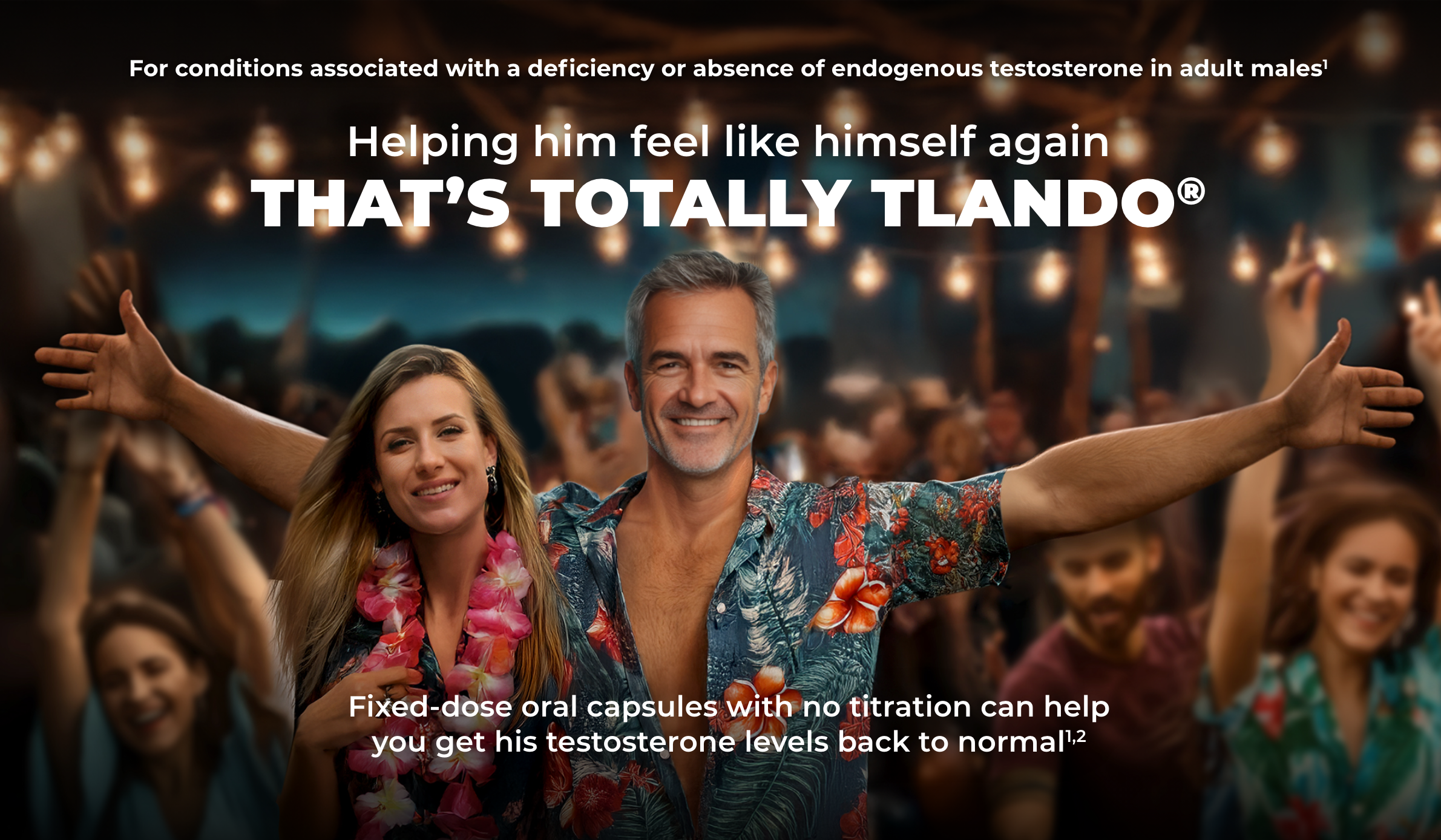 TLANDO (testosterone undecanoate) is indicated for testosterone replacement therapy in adult males for conditions associated with a deficiency or absence of endogenous testosterone.